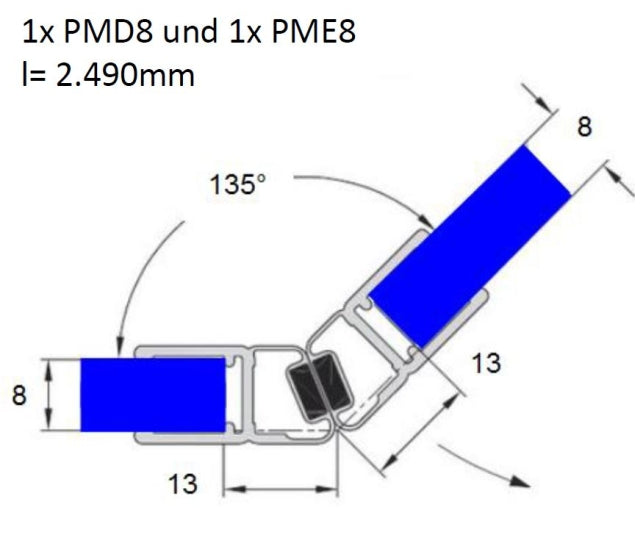 2er SET REHAU Magnetdichtung 135°, 6 - 8 mm, rechts + links