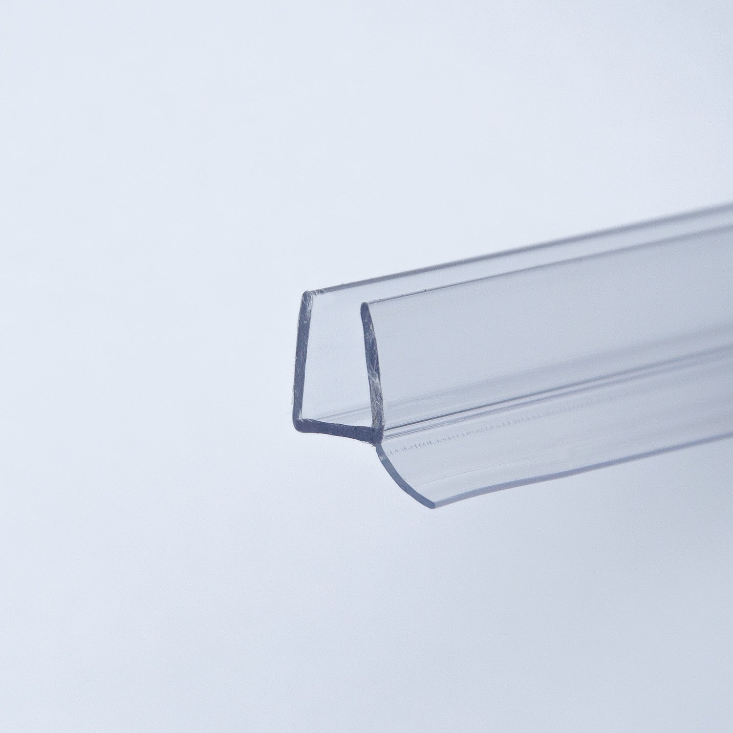 Diese durchsichtige Dual Durometer PVC Dichtung und Abstreifer hat zwei Verwendungsmöglichkeiten: Stecken Sie sie auf der Türunterseite auf und die weiche Lippe wirkt wie ein Abstreifer; stecken Sie sie auf eine überlappende Falttür auf und die weiche Lippe wirkt wie eine Dichtung.